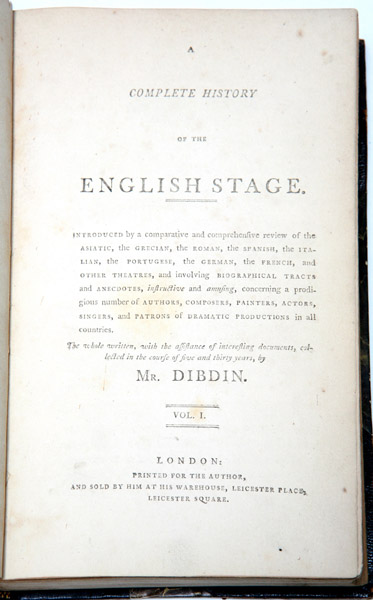 A Complete History of the English Stage. Introduced by a comparative and comprehensive review of the Asiatic, the Grecian, the Roman, the Spanish, the Italian, the Portugese, the German, the French, and Other Theatres, and involving Biographical Tracts and Anecdotes.... London: Printed for the Author, [1797-1800].