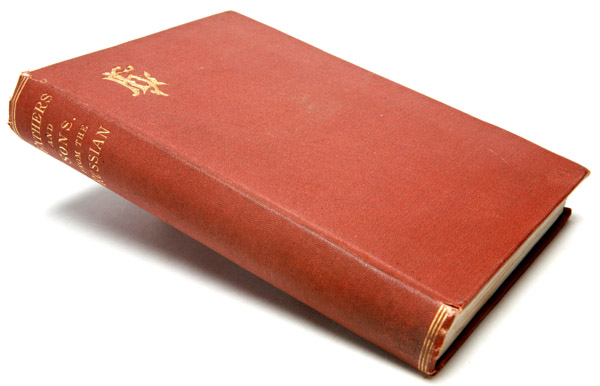 First edition in English of Ottsy I Deti (1862). Fathers and Sons was Turgenev’s first appearance in America, and concerns the widening generation gap between fathers and sons. The first modern Russian novel, it is credited with coining the term, “nihilism.â€