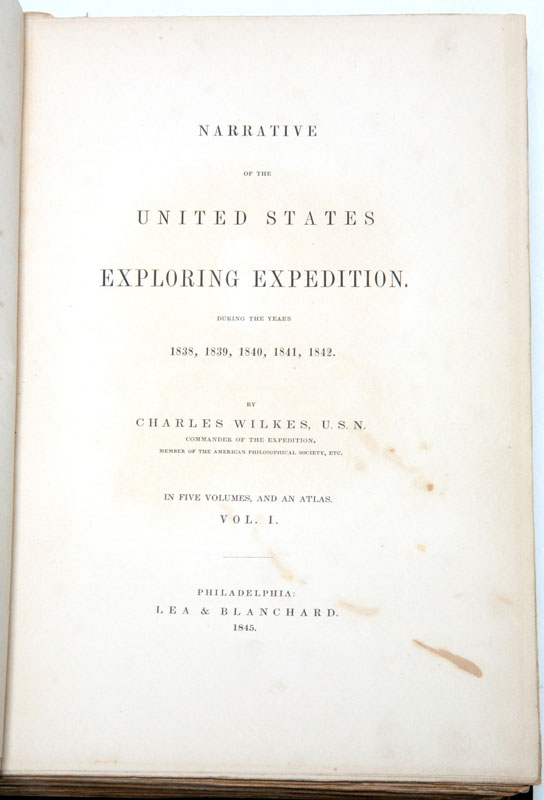 Narrative Of The United States Exploring Expedition. During The Years 1838, 1839, 1840, 1841, 1842. Philadelphia: Lea & Blanchard, 1845.
