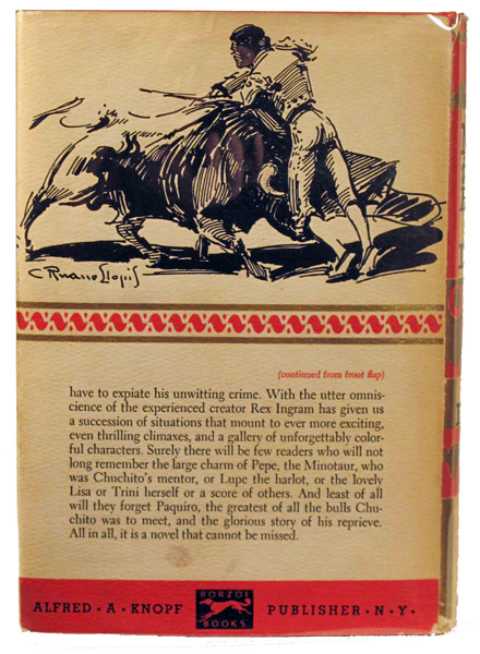 Rex Ingram (1892-1950) was a film director, writer and actor. Born in Ireland, he emigrated to the United States in 1911, where he studied sculpture at Yale University. Eventually shifting his interests to film-making, he made mostly action or supernatural films. His best known films are The Four Horsemen of the Apocalypse (1921), The Prisoner of Zenda (1922), Scaramouche (1923), and The Garden of Allah (1927). This novel, about the turbulent life of a Spanish Matador, is the first of two novels.