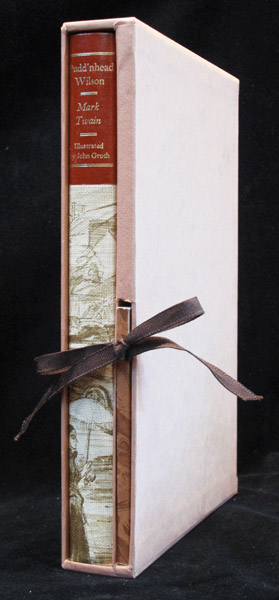 Octavo. [ii, blank], [xviii], [1]-164, [2, blank], [1, signed limitation page], [1, blank] pp. With seven inserted plates (one being a double paged plate). Publisher’s full monochrome pictorial buckram, brown leather label to spine lettered in gilt. With the original slipcase with side compartment containing the supplemental publication, "Pudd'nhead Wilson Calendar", bound in marbled wraps. Both volumes are fine, slipcase has very minor soiling.