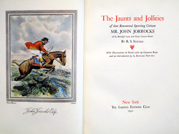 The Jaunts and Jollities of that Reknowned Sporting Citizen Mr. John Jorrocks. of St. Botolph Lane and Great Coram Street New York: The Limited Editions Club, 1932.