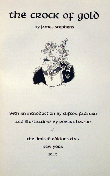 The Crock of Gold. with an introduction by Clifton Fadiman and illustrations by Robert Lawson New York: The Limited Editions Club, 1942.