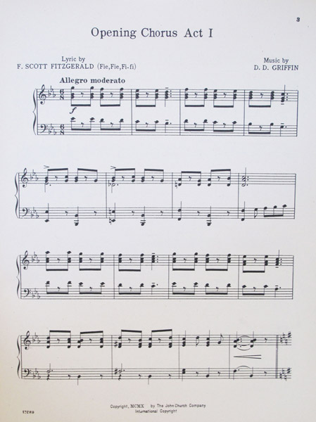 This is the earliest obtainable work by Fitzgerald (it was only preceded by a privately-printed script for the same show made expressly for the cast and crew, in an unknown number of copies). According to Bruccoli, this show was entirely written by Fitzgerald, with revisions by Ellis (who took full credit). All of the lyrics are by Fitzgerald.