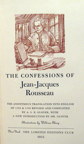 The Confessions of Jean-Jacques Rousseau. The anonymous translation into English of 1783 & 1790 revised and completed by A. S. B. Glover, with a new introduction by Mr. Glover New York: The Limited Editions Club, 1955.