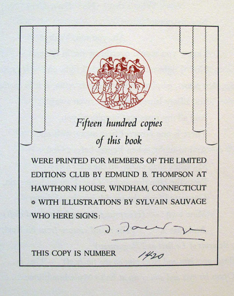 Cyrano de Bergerac. An heroic comedy in five acts: In the English version by Brian Hooker with a new introduction by the translator and with water-colors by Sylvain Sauvage New York: The Limited Editions Club, 1936.
