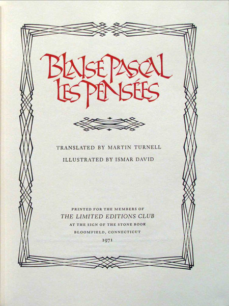 Les Pensées. Translated by Martin Turnell. Illustrated by Ismar David. Bloomfield, Connecticut: The Limited Editions Club, 1971.