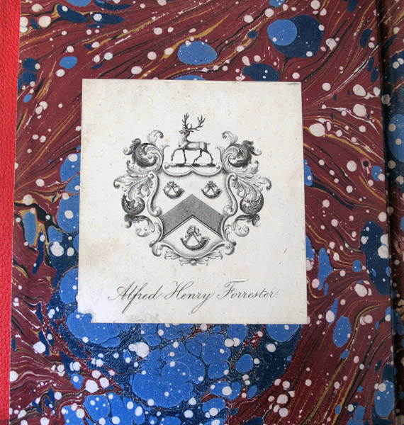 Two volumes. Octavo. vii, [ii], 306; [iv], 298 pp., plus 2 pages publisher’s advertisements in volume 2. A married set, yet bound to match, both in polished calf and pebbled cloth (one in red and one in maroon), spines gilt in compartments with morocco labels, top edges gilt. Volume with the armorial bookplates of John Ayris and Henry A.A. Thorn, as well as a gift inscription from Ayris to Thorn on title, dated 1900; volume 2 with armorial bookplate of the author, Alfred Henry Forrester.