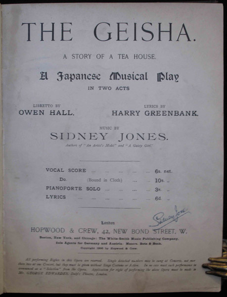The Geisha. A Story of a Tea House. A Japanese Musical Play in Two Acts. London: Hopwood & Crew, 1896.