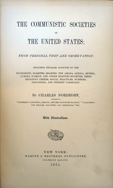 The Communistic Societies of the United States. from Personal Visit and Observation. New York: Harper & Brothers, 1875.