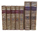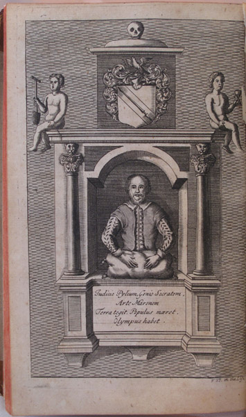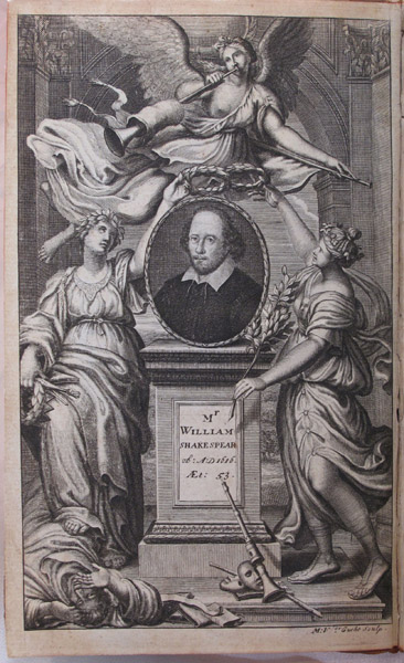 Seven octavo volumes. [viii], xl, 463, [1]; [465]-975, [1]; [977]-1535, [1]; [ii], [1537]-2072; [ii], [2073]-2647, [1]; [2651]-3324; [xvi], lxxii, 45, [7], 51-472, [6] pp., including 2 pages publisher’s advertisements. With elaborate allegorical frontispiece by M. Vander Gucht incorporating a portrait of Shakespeare in volumes I, V & VI, engraved frontispiece of Venus and Adonis in volume VII, complete with the copperplate of the Stratford Monument (p. xxxvii) and 43 finely engraved copperplates (one for each play). Volume I with general title for entire work, each volume with separate volume title, dedication of volume I with fine engraved vignette of the arms of the Duke of Somerset, dedication in volume VII with engraved vignette of the arms of the Earl of Peterborow, woodcut chapter initials (some historiated), head- and tail-pieces. First five volumes uniformly bound in early nineteenth-century half calf and paste-boards (190 x 115 mm.); spines gilt with elaborate Greek-key pattern, morocco spine labels. Some light wear to extremities (primarily corners) as expected, some light occasional age-toning, and a few minor paper repairs, but overall a beautiful set with contemporary ownership inscriptions and text corrections. Last two volumes expertly bound to match, both beautiful large paper copies (222 x 135 mm.).