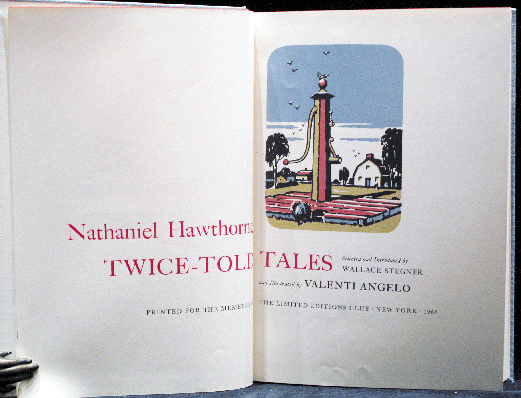 Twice-Told Tales. Selected and Introduced by Wallace Stegner and Illustrated by Valenti Angelo. New York: The Limited Editions Club, 1966.