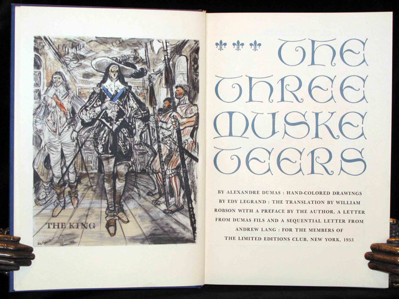 The Three Musketeers. Hand-colored drawings by Edy Legrand. The translation by William Robson with a preface by the author, a letter from Dumas Fils and a sequential letter from Andrew Lang. New York: The Limited Editions Club, 1953.