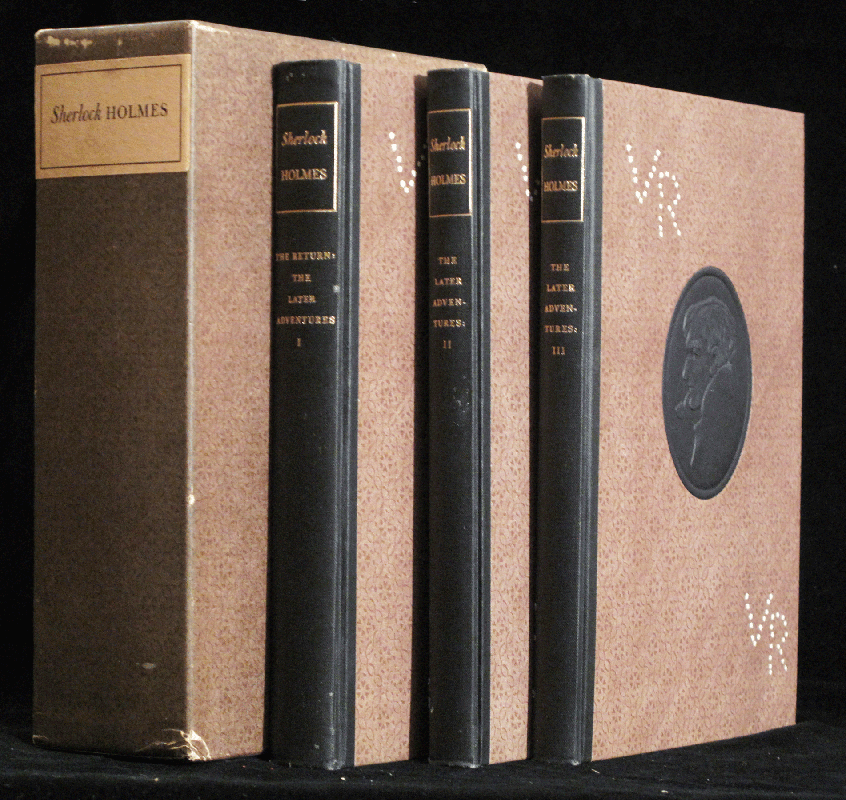 Octavo. 924 pp; 790 pp; 512 pp. Eight volumes, divided into three sets, each with publisher's quarter black linen over decorated boards, spine lettered in gilt, black embossed cameo-portrait of Sherlock Holmes to front cover, edges speckled brown. Touch of rubbing and edge-wear to spines, else all volumes fine. With three original, slightly rubbed, matching patterned slipcases.