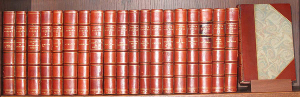 Complete in twenty octavo volumes. Bound by Bumpus in contemporary half brown levant morocco over marbled boards. Spines paneled and lettered in gilt in compartments, five raised bands, top edge gilt, others uncut, marbled endleaves. With original covers and spines bound-in at rear of each volume. Several volumes re-hinged, some rubbing and mild wear to several joints, some rubbing to edges, a few volumes with a few dark marks on binding. Overall, a good set.