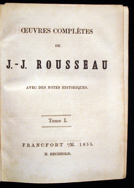 [Œuvres Complètes de Jean-Jacques Rousseau]. Francfort: H. Bechhold, 1855-1856.