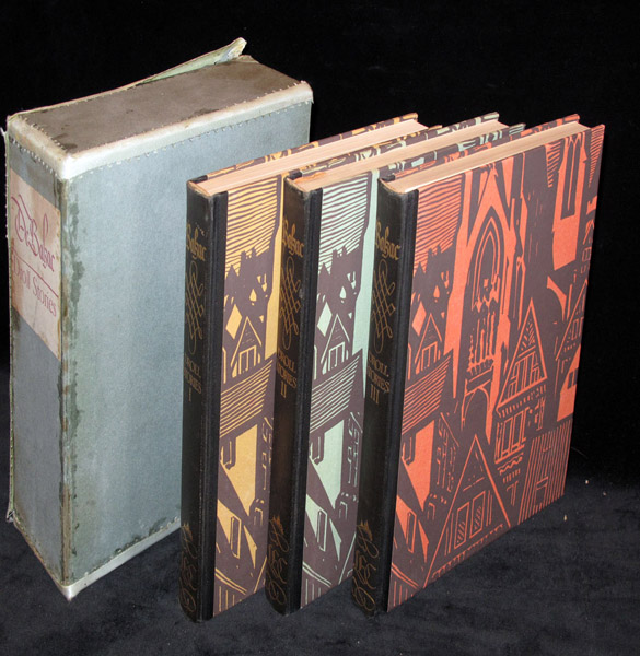 Three 12mo volumes. 822 pp. Publisher's quarter black cloth over printed paper boards, spines stamped in gilt, decorated chapter initials. Postcard from John Rodker Publishing laid in to Volume I; piece of newsprint laid in to Volume II, with offsetting opposite; newspaper clipping from the April 2, 1932 issue of the Saturday Review of Literature (featuring a glowing review of this book) laid in to Volume III. Touch of edgewear to spines, still three beautiful near fine volumes. With original slipcase. Slipcase is rubbed and moderately soiled, edges repaired and ribbon glued on, but still solid.