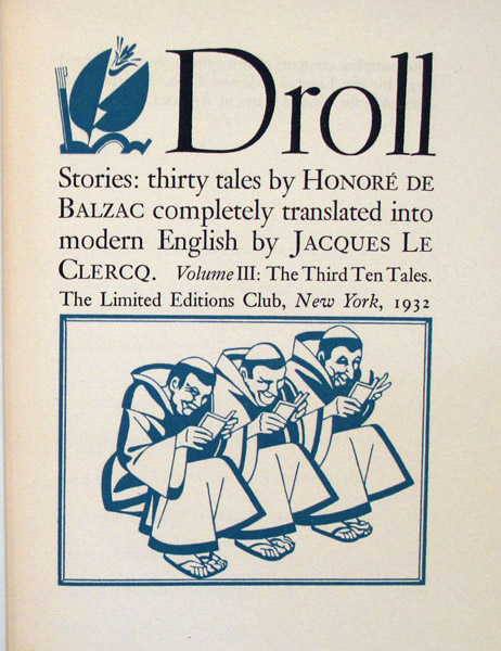 Droll Stories. thirty tales by Honoré de Balzac competely translated into modern English by Jacques le Clercq. New York: The Limited Editions Club, 1932.