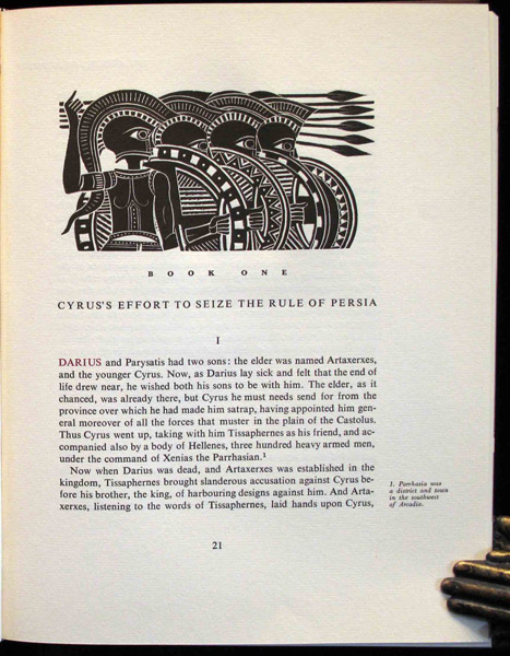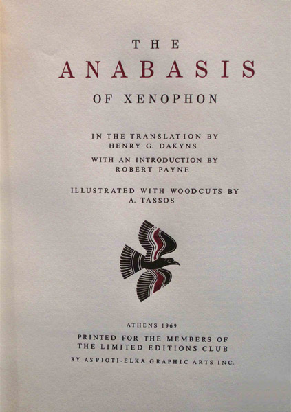 The Anabasis of Xenophon. In the translation by henry G. Dakyns with an introduction by Robert Payne. Illustrated with woodcuts by A. Tassos. Athens: The Limited Editions Club, 1969.