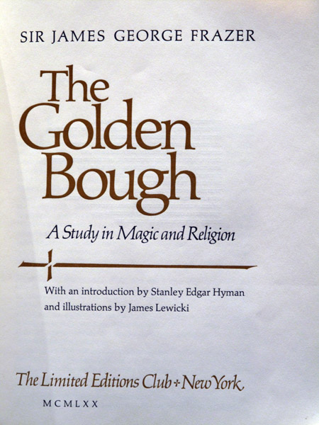 The Golden Bough. A Study in Magic and Religion. With an introduction by Stanley Edgar Hyman and illustrations by James Lewicki. New York: The Limited Editions Club, 1970.