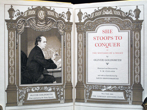 She Stoops to Conquer. or, The Mistakes of a Night. Illustrated and Decorated by T. M. Cleland and with an Introduction by Louis Kronenberger. New York: The Limited Editions Club, 1964.