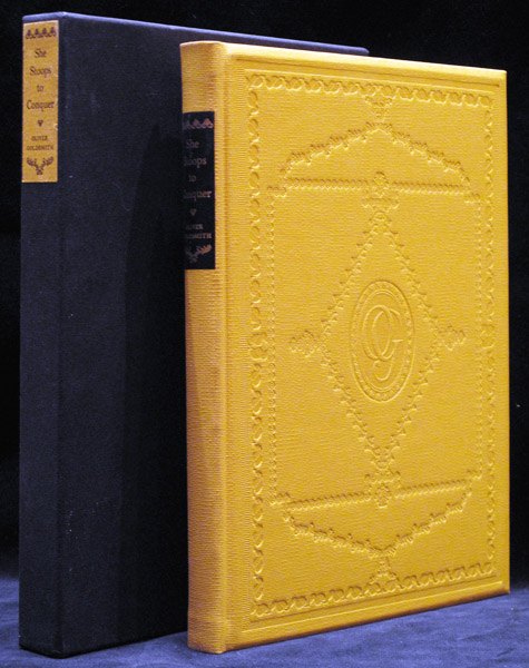 Quarto. 134 pp. Publisher's full yellow buckram over beveled boards, gilt-lettered black leather label to spine, front cover decoratively blind-stamped, top edge stained yellow, two-color frontispiece with a portrait of Oliver Goldsmith. A fine copy with original slipcase. Touch of rubbing to slipcase, still about fine.