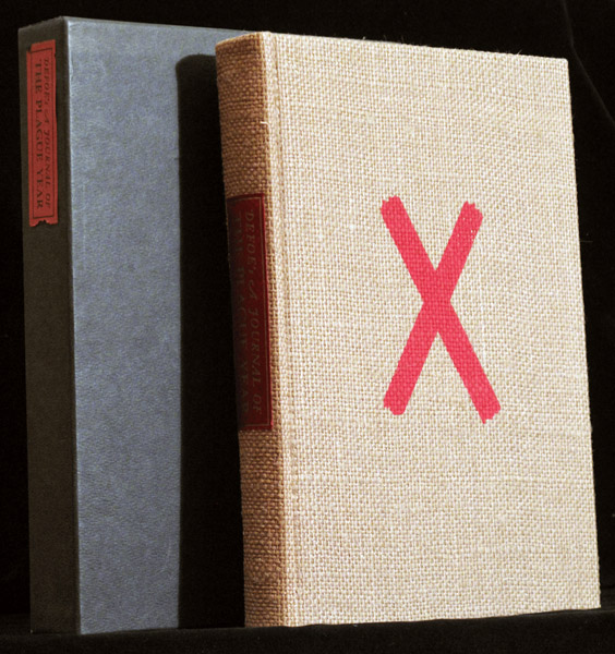 Quarto. 618 pp. With eight inserted plates. Publisher's full natural burlap, gilt-lettered crimson leather label to spine, front cover printed in crimson with an 'x' symbol from the time of the Plague, back cover printed in crimson with the year 1665, all edges stained black. A fine copy with near fine original slipcase.