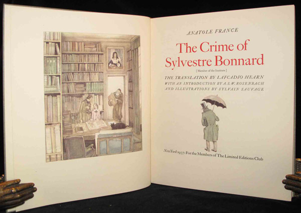 The Crime of Sylvestre Bonnard. The translation by Lafcadio Hearn with an introduction by A. S. W. Rosenbach and illustrations by Sylvain Sauvage New York: The Limited Editions Club, 1937.