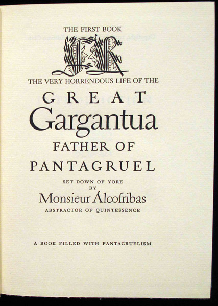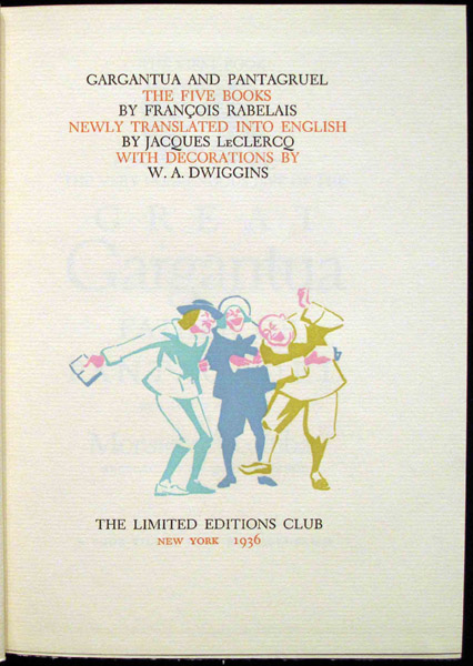 Gargantua and Pantagruel. The five books. Newly translated into English by Jacques LeClercq. With decorations by W. A. Dwiggins New York: The Limited Editions Club, 1936.