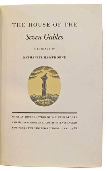The House of the Seven Gables. A Romance. With an introduction by Van Wyck Brooks and illustrations in color by Valenti Angelo. New York: The Limited Editions Club, 1935.