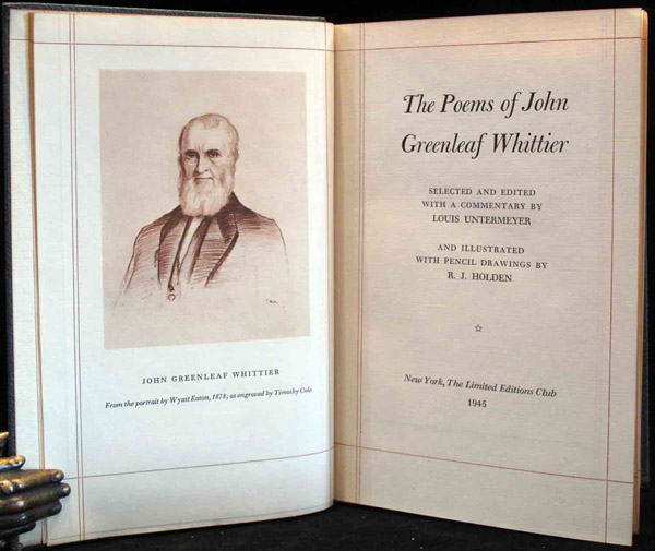 The Poems of John Greenleaf Whittier. Selected and edited with a commentary by Louis Untermeyer and illustrated with pencil drawings by R. J. Holden. New York: The Limited Editions Club, 1945.