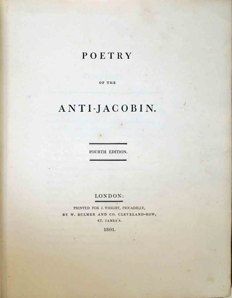 Poetry of the Anti-Jacobin. London: For J. Wright, Piccadilly, by W. Bulmer and Co., 1801.