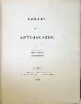Fourth edition of this book of poetry taken from the Anti-Jacobin (1797-1798), a popular weekly journal that combined politics, polemics, and satire. Edited by William Gifford and featuring frequent contributions by George Canning, George Ellis, and John Hookham Frere, the journal was perhaps best known for its weekly 'Poetry of the Anti-Jacobin' section, which took aim at British politicians and writers. "[This section] was immediately recognized, with its verve and panache, as the most innovative part of the magazine and was collected and edited by Gifford in 1799 as the Poetry of the AntiJacobin [sic], a volume which remains a hugely important document in the development of English parody."