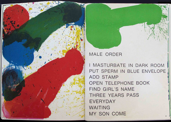 This impressive collection contains fifty of Ting's provocative poems, illustrated by the lithographs. This Chinese-American artist was born in Shanghai, but has been based in New York since 1961. His work is characterized by bold colors featuring such subjects as sensuous women, cats, birds, fish,giant penises, etc.