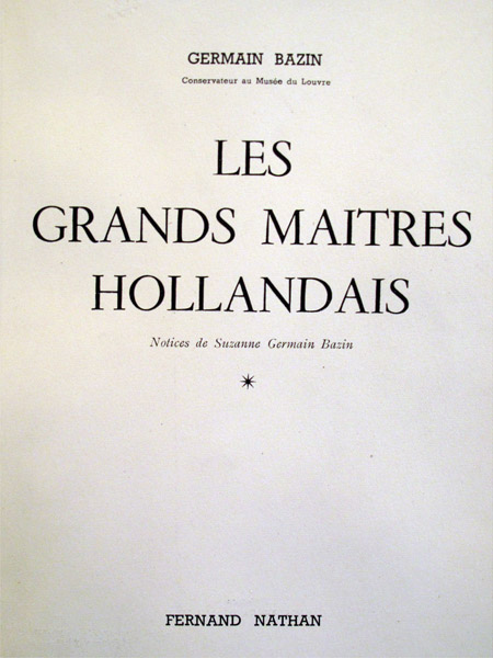 Les Grands Maitres Hollandaise. Notices de SIzanne Germain Bazin [Paris]: Fernand Nathan, [1950].
