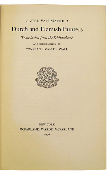 Dutch and Flemish Painters. New York: McFarlane, Warde, McFarlane, 1936.