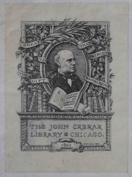 From the library of John Crerar, Chicago, with his bookplate on the front pastedown, and perforated stamp on the title-page. With four other small ownership stamps on front free endpaper, front blank, and title-page. With French bookseller’s large ticket on the top of the front pastedown. The John Crerar Library (established in 1895) became one of the country’s leading research libraries, with an emphasis on science and technology.