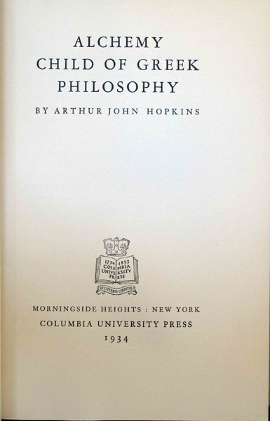 Alchemy. Child of Greek Philosophy Morningside Heights, New York: Columbia University Press, 1934.