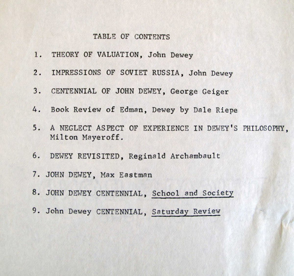 Special John Dewey Issue of Teacher Education Quarterly, Vol. XVII, No. 3, Spring, 1960.