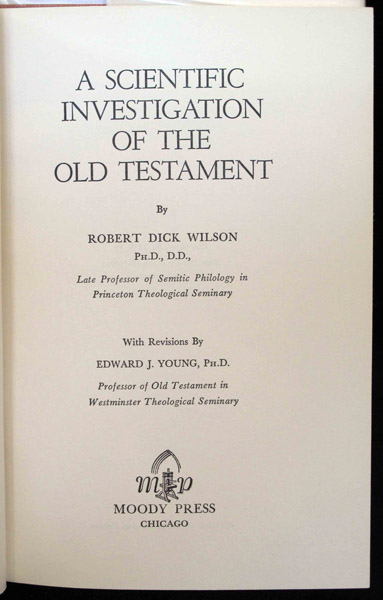 A Scientific Investigation of the Old Testament. With Revisions by Edward J. Young, Ph.D. Chicago: Moody Press, [1959].