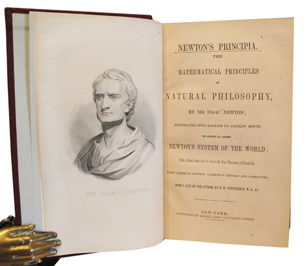 Newton's Principia. The Mathematical Principles of Natural Philosophy, by Sir Isaac Newton; Translated into English by Andrew Motte. To Which is Added Newton's System of the World; With a Portrait Taken from a Bust in the Royal Observatory at Greenwich. With a Life of the Author , by N.W. Chittenden, M.A. &c. New York: Daniel Adee, [1846].