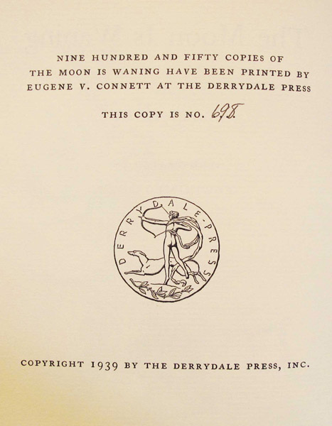 The Moon is Waning. Illustrated by Edwin Megargee New York: The Derrydale Press, [1939].