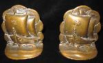 (5.5 x 5.5") Nine pounds the pair A handsome pair of ships, sails billowing under the Maltese. Solid bronze, both with original labels and retaining their original felt bottoms. A few small nicks, a touch of oxidization (mostly to backs), but overall a near fine set.