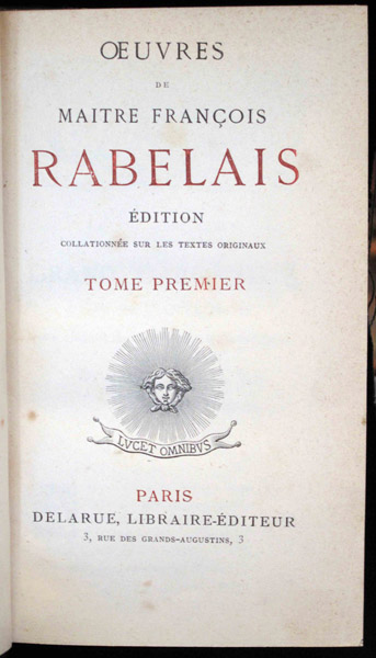Oeuvres de Maitre François Rabelais. Édition Collationée sur les Textes Originaux Paris: Delarue, Libraire-Éditeur, [1877].