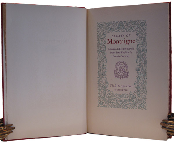 Essays of Montaigne. Selected, Edited & Newly Done Into English by Francis Carmody [Hillsborough, California]: The L-D Allen Press, 1948.