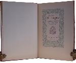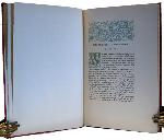 Octavo. 181 pp. Title, headpieces, and chapter initials printed in green, purple, and red. Chapter initials, many of which are historiated, are hand-illuminated in gilt. Original full red brocade, spine lettered in gilt, top edges-gilt. Extremities very lightly rubbed, touch of sunning to spine, but still a near fine copy.
