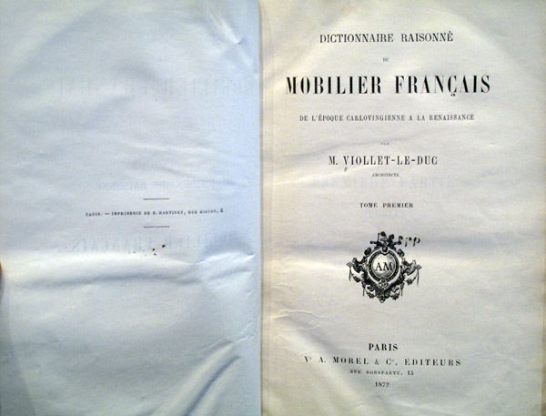 Dictionnaire Raisonné du Mobilier Français de L'Époque Carlovingienne a la Renaissance [Volumes I-IV]. Paris: Ve A. Morel & Cie, 1871-1873.