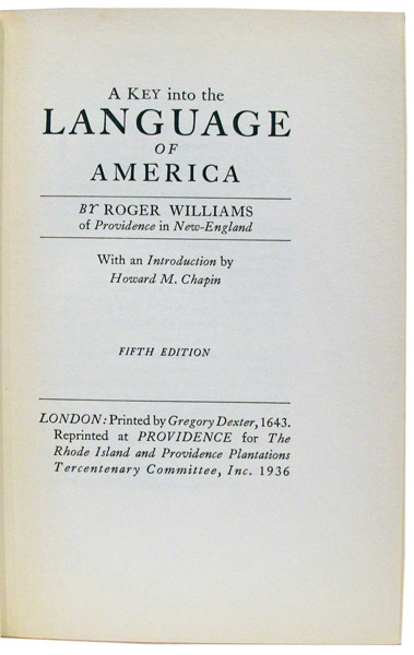 A Key into the Language of America. Providence: The Rhode Island and Providence Plantations Tercentenary Committee, Inc., 1936.