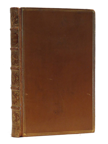 Octavo. [vi], 183 pp., with black and white frontispiece and two pages of publisher's ads. Bound by Riviere & Son in full tan calf, spine lettered, and elaborately tooled in gilt in compartments, covers triple ruled in gilt, gilt inner dentelles, all edges gilt. Publisher's cloth bound in at rear. Light rubbing to extremities, two corners lightly bumped, but still very good. Presentation copy, signed and inscribed by the author to John Payne Collier.