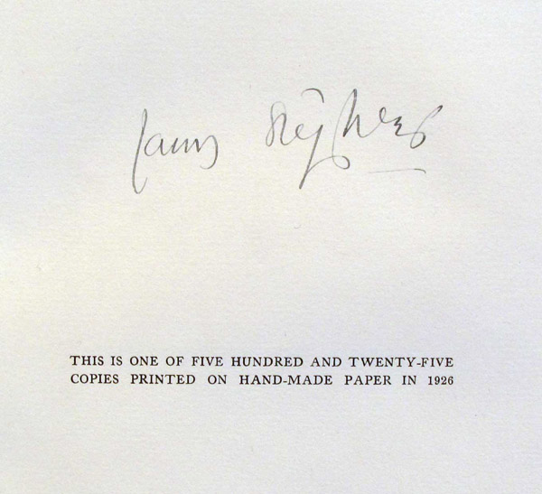 First edition thus. One of only 525 copies printed on hand-made paper and signed by the author.